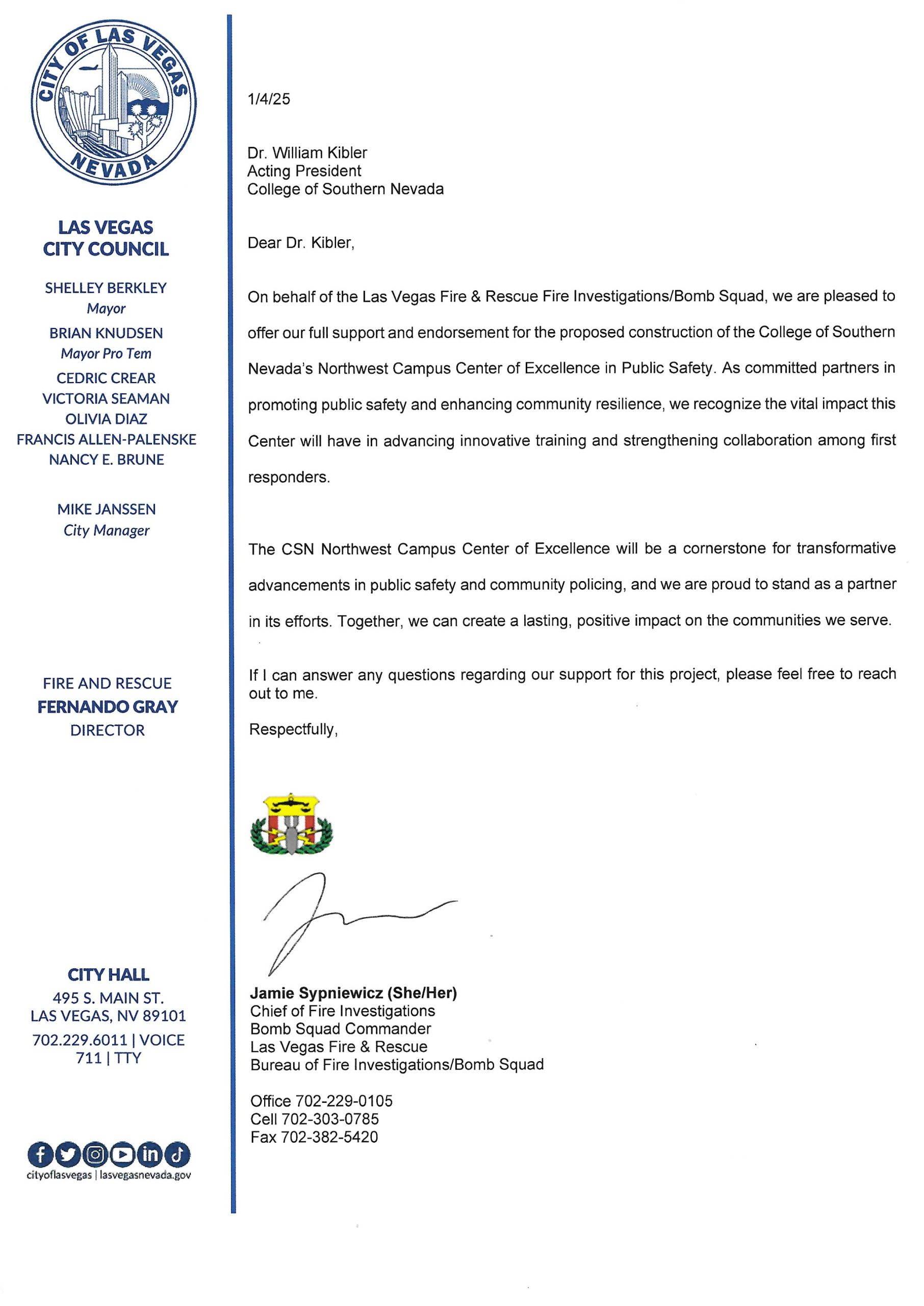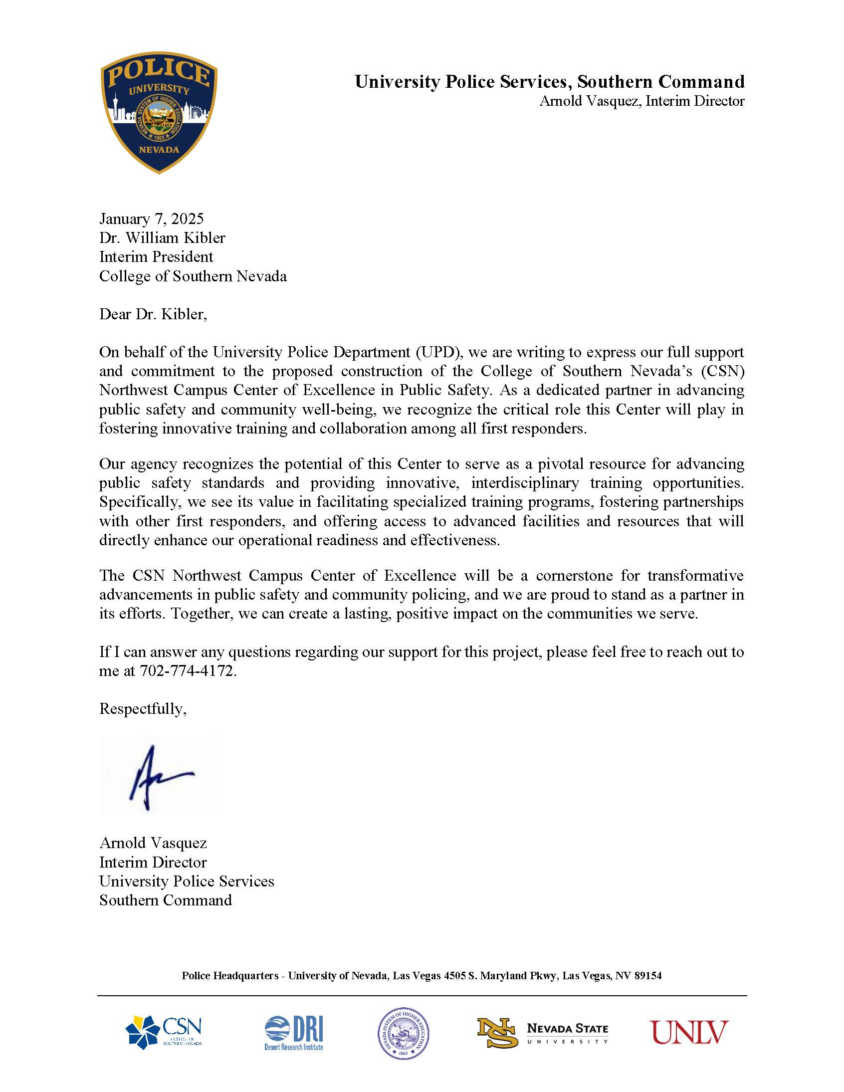 We already have 40 acres of land on the corner of Durango and Elkhorn, a gift from the federal government in 2020 because our mission is so important. We have agreements with the City of Las Vegas and others on how to develop the land. We have fully developed plans with general education buildings and parking lots and trees and these really great architectural renderings you can see here. There’s even video!